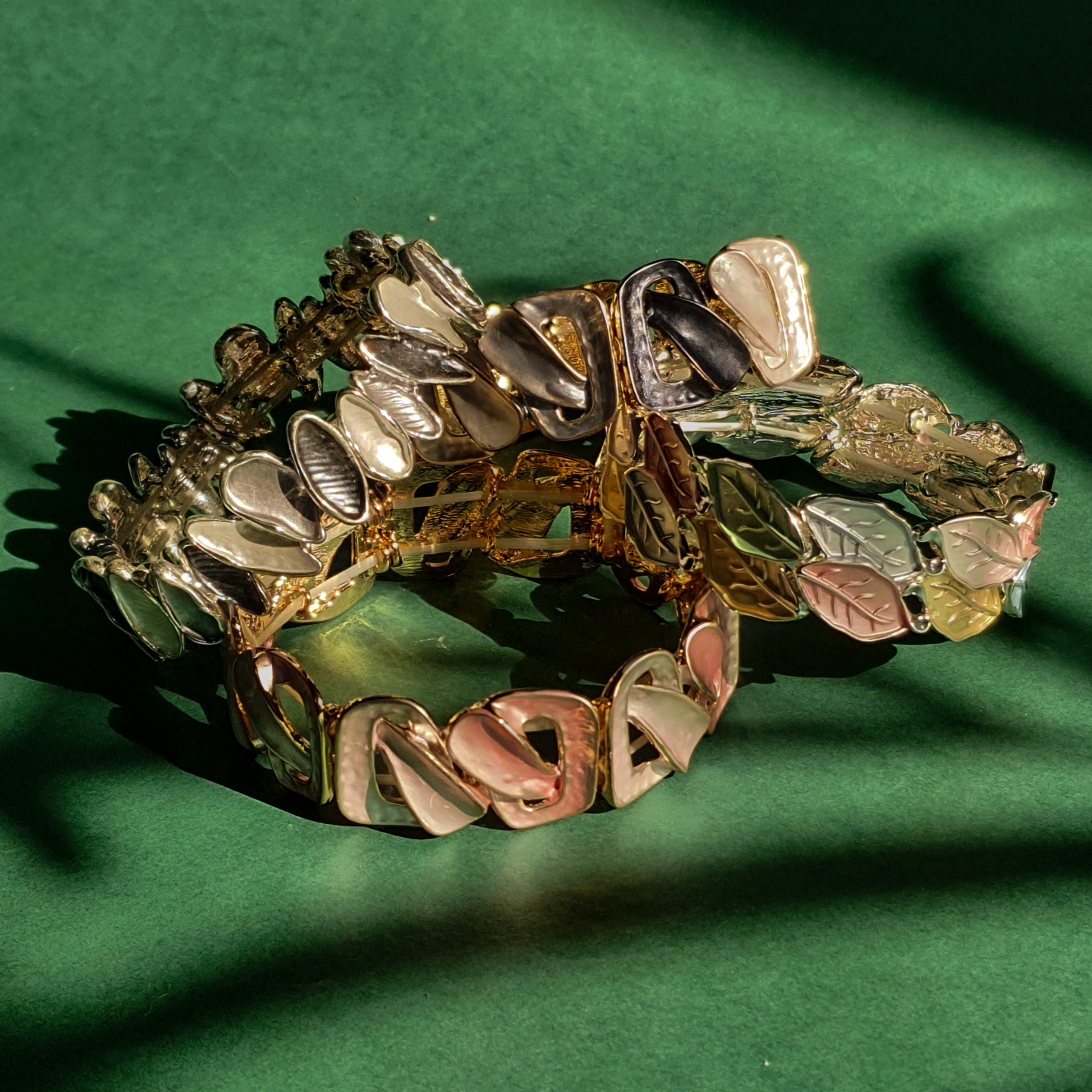 ترکیبی از فرمهای نامنظم و رنگهای خنثی برای کسانی که به دنبال استایلی متفاوت هستند. این دستبند به دلیل داشتن بند کشی، بدون نیاز به قفل، به راحتی در دست قرار میگیرد و برای استفاده روزانه بسیار ایدهآل است.
