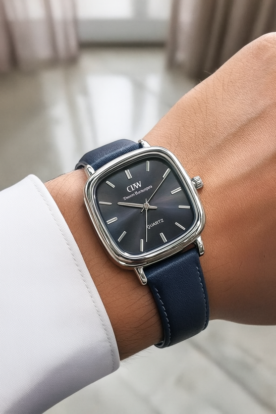 ساعت صفحه مربع بند چرم