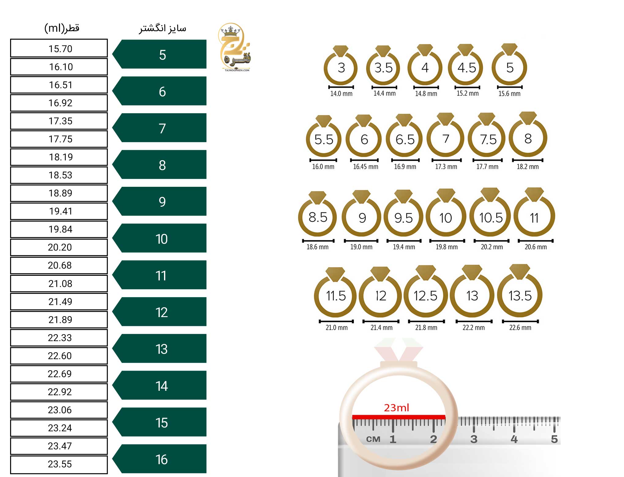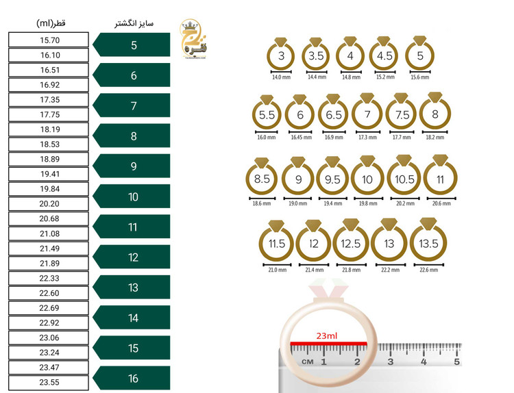 نسبت سایز با انگشتر کوچکتر داخل عکس نشان داده شده