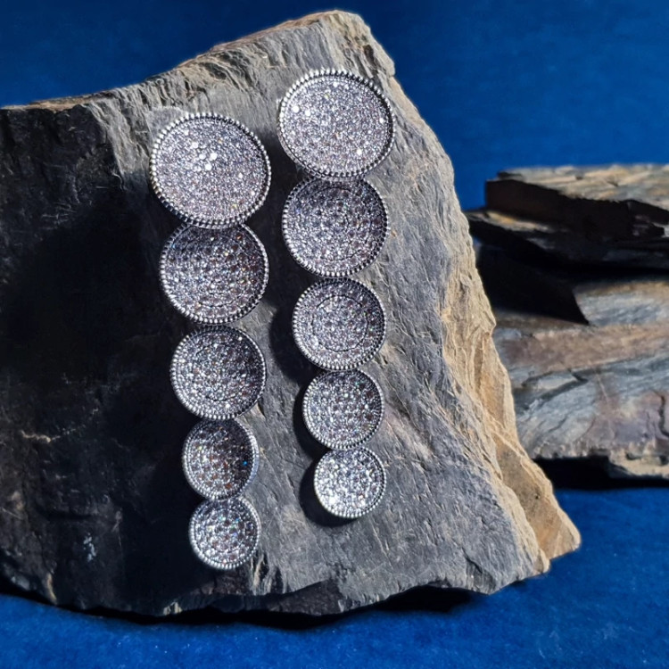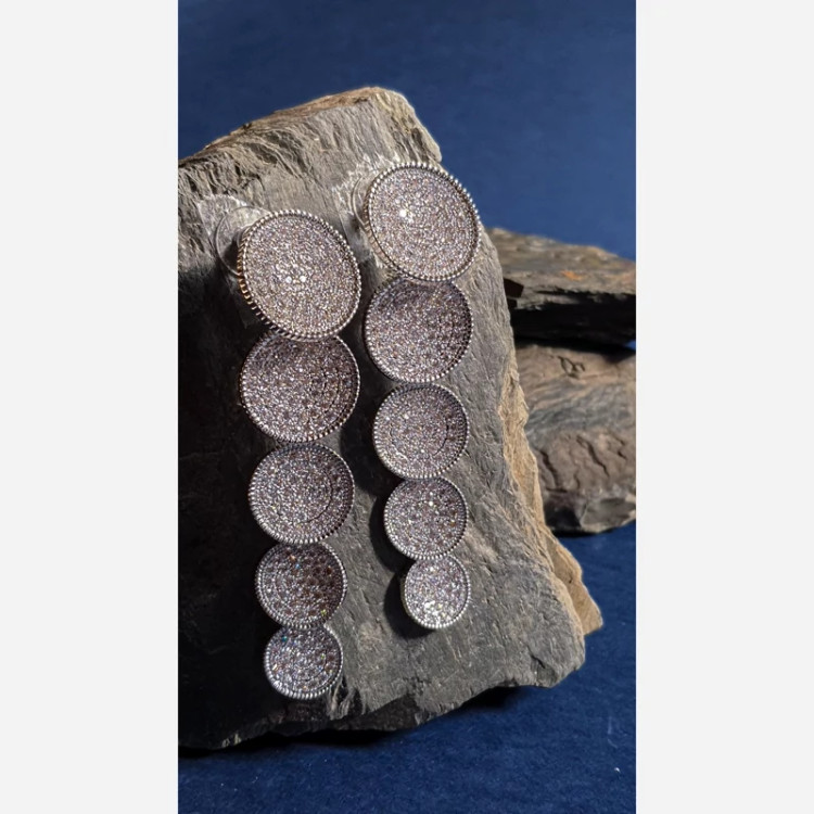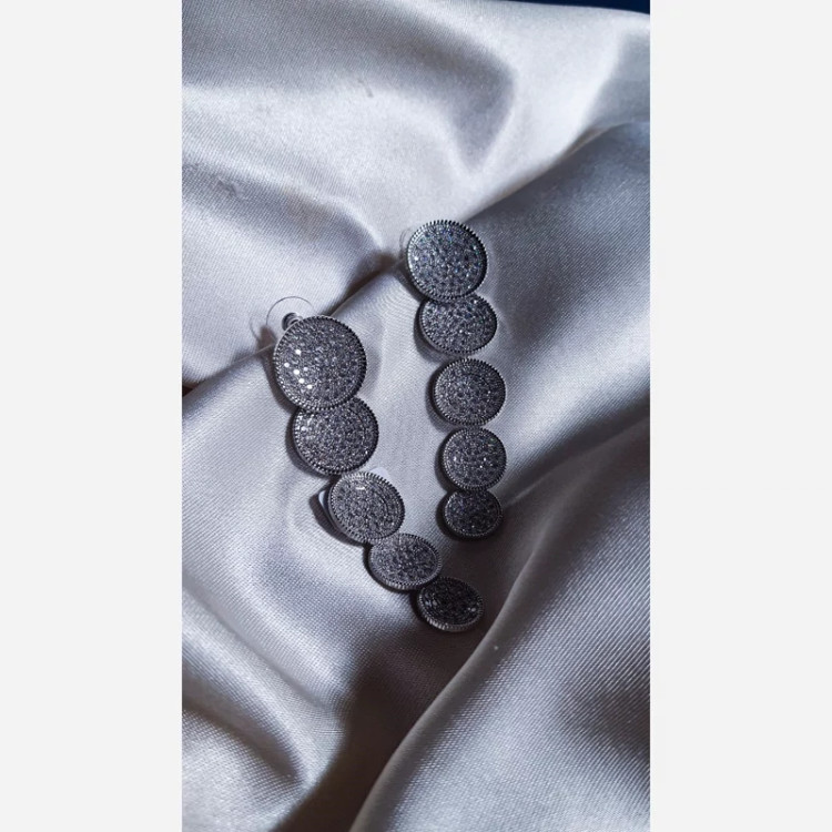 "گوشوارههای ماهسایه؛ با الهام از درخشش ماه و هماهنگی آسمان شب، طراحی شدهاند تا هر نگاهی را مسحور کنند. ترکیب ظرافت دایرههای درخشان و جذابیت مینیمالیستی، این گوشواره را به انتخابی شیک و خیرهکننده برای مناسبتهای خاص و روزمره تبدیل کرده است. متریال باکیفیت و طراحی ماندگار این محصول، تضمینی برای درخشش همیشگی است. با ماهسایه، بدرخشید!"
