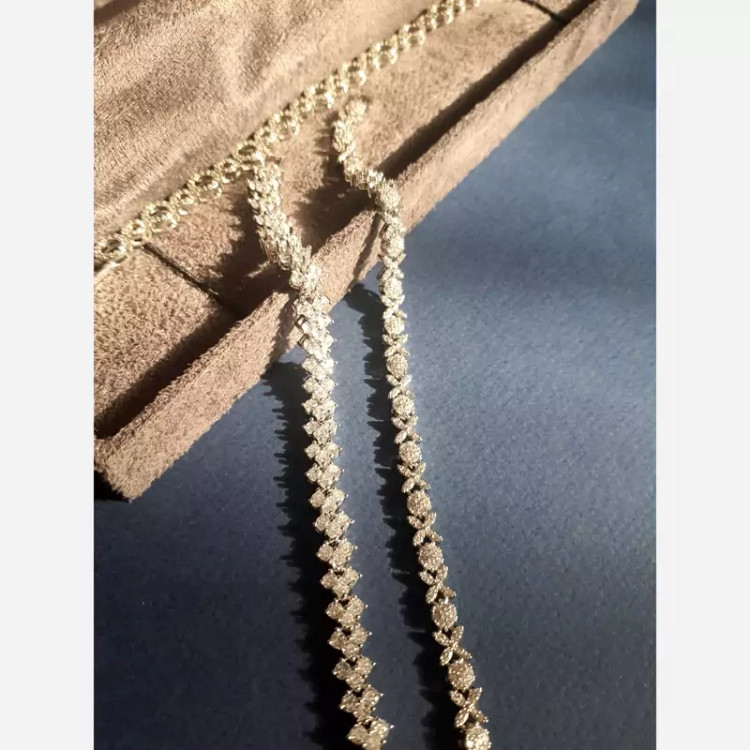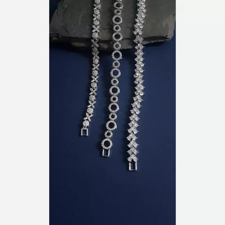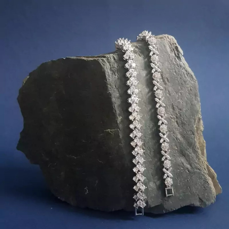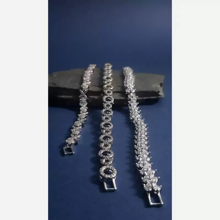 دیدن محصولات مرتبطدستبند جواهری آوردم براتون فوقالعاده زیبا آبکاری نقره نگین زیرکونیوم و بهترین کیفیت رنگ ثابت هست ولی در معرض مواد شوینده و الکلی نباشن #جواهر#دستبند#دستبند_جواهری #نگینی #نگین_دار #نگیندار#رنگ_ثابت