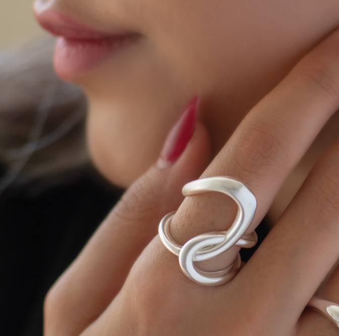 انگشتر «تپش» با طراحی موجدار و سیال خودش، یادآور ریتم آرام قلبه.
